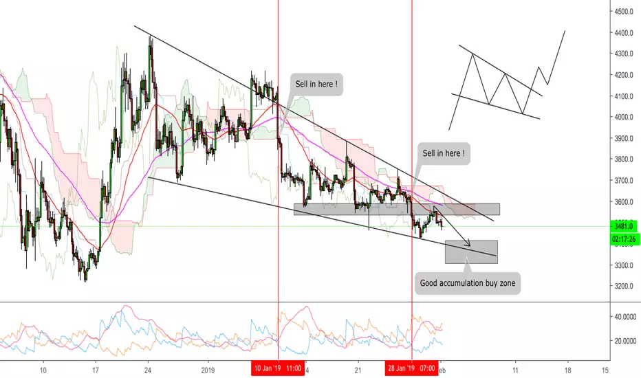 We may see the price come to lower support zone and consider buy in here. We are in big falling wedge pattern.