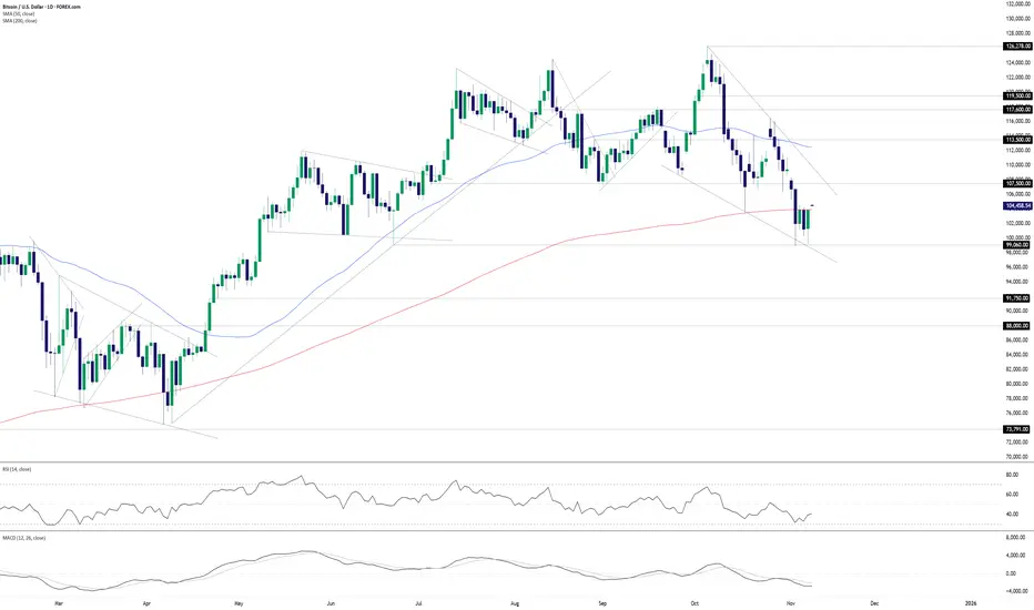 BTC/USD continues to bounce strongly from $99,060 support, adding to the sense we may be nearing a bullish turning point if sellers parked above the 200-day moving average are eventually overrun.