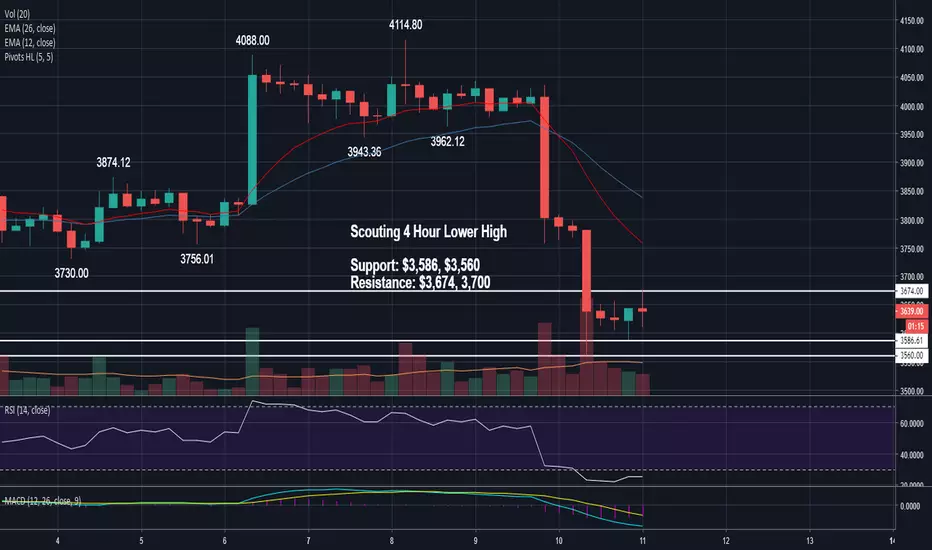 Looking for a 4 hour lower high to be set as the RSI slowly recovers from oversold.