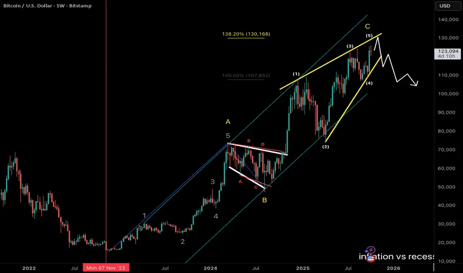 wave C projection, yellow ending diagonal upper line near 130k