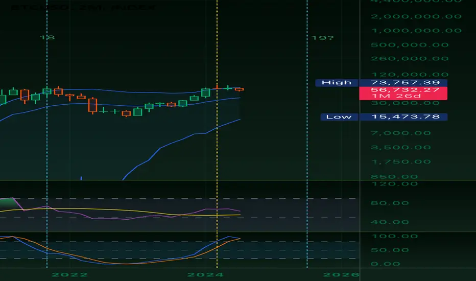 I’ve been cautious all year, up until I saw the 2M chart for BTC. While I could have “sold in May and gone away” and held. Sure, I missed the short term trading op but I haven’t lost the war. The 2M is the last hill I stand on. Historically - post halving - 16 candles are printed to provide the next high. Each consecutive print builds upon the last. “This time is different”. No it’s not. The stochastic hasn’t yet crossed and it still has room to move. 2017, stochastic hummed the upper register for 8 months (!). Further clues can be found from the RSI, which is lazily climbing so as not to give away what’s building underneath. Mt GOX FUD and selling pressure does not negate from the lack of BTC on exchanges and hungry ETFs waiting to scoop up any dumped BTC like a team of humpback whales forcing fish to the surface. I have to admit, this last move had me on the ropes. But after further observation, this was a dirty fake out. With “revised” economic data emerging from the U.S. and a stuttering DXY, the bears may well have been snared.