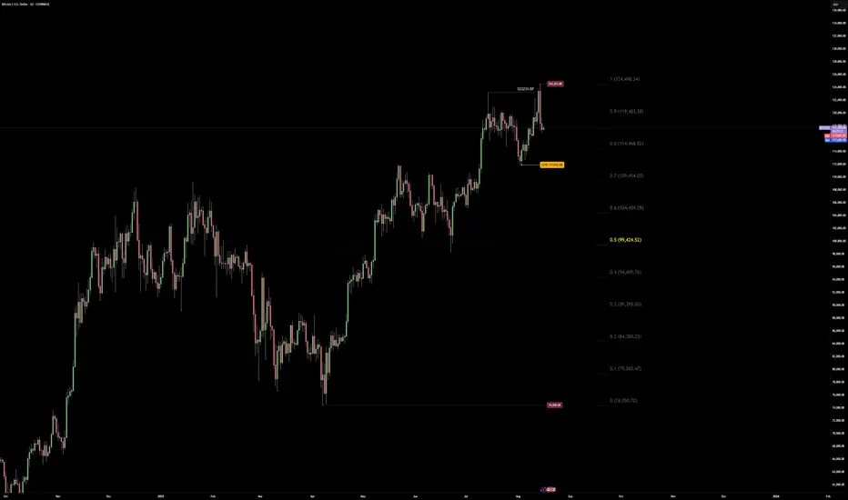 Bitcoin just got slapped down hard from the 124,533.00 zone — no surprise after 5 months of dollar weakness and BTC strength.