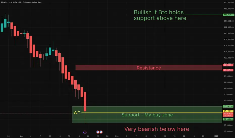 Today Btc has hit the WT ($84,200) as anticipated, and is resting in my buy zone (currently at $84K). You will ask yourself, "how did he know Btc would do that"?