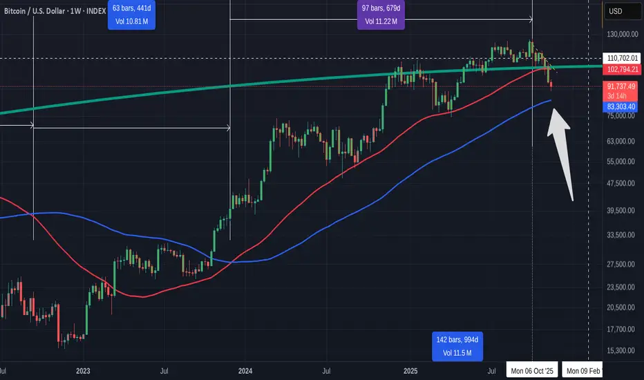 The Labels above are the day counts from ATH, to the SMA crossing Bearish ( 50 dropping below the 100