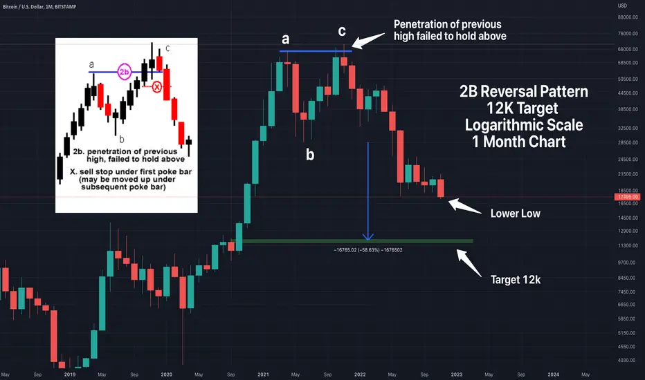 I think we can mostly agree that this 2B Reversal Pattern is back on the table since we saw a major drop yesterday. Bitcoin formed a lower low, which is a Bearish sign.
