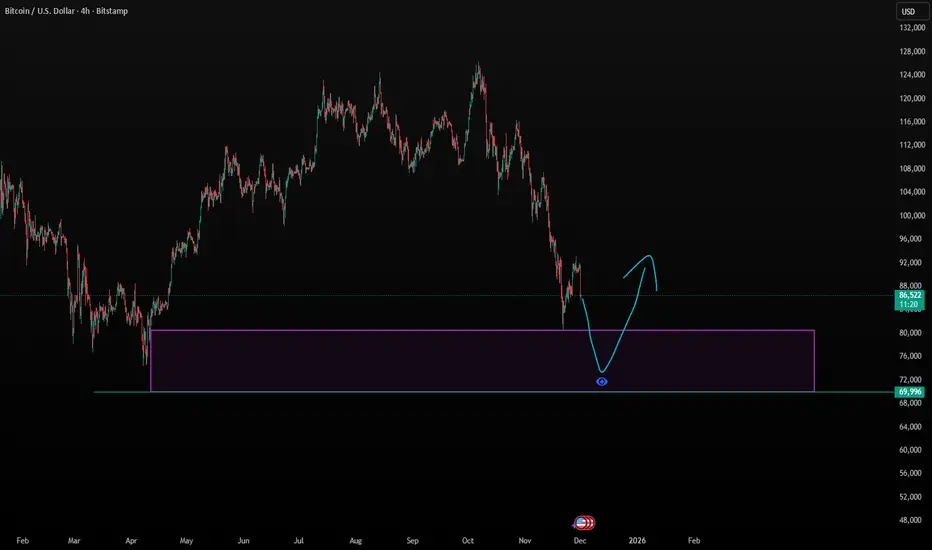 BTCUSD attempt to break above $90,000 after rebounding from the $80,000 support failed, sending price back toward $85,000 and weakening bullish momentum. A continued decline below the $80,000 zone would shift focus to the $70,000–$75,000 support range as a key reaction area. A strong bounce there could revive medium-term bullish structure. However, if this zone breaks decisively, a deeper move toward the $50,000 region would not be surprising, signaling a broader trend reversal.