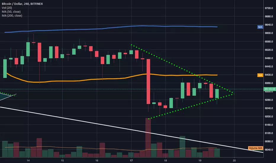 Could break either way...wait for a clear breakout should come by the next 4hr candle.