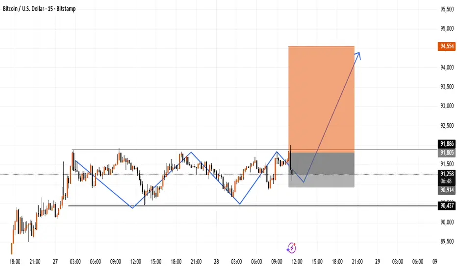 The idea is to observe the structure and wait for price to move above the upper boundary to confirm a shift in momentum.