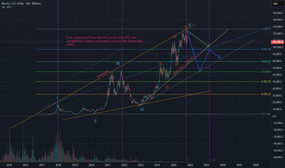 As can be seen from the BTC chart, the major expanding triangle pattern appears to be complete. On the chart, point 5-5 corresponds to point 2 on the Fibonacci timeframe. While a deep decline at point 1 on the Fibonacci timeframe doesn't necessarily mean a similarly deep decline at point 2, we can consider this as supporting our argument.