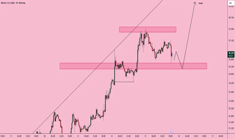 A strong breakdown and close below 95,300 would invalidate the bullish setup and shift bias toward deeper downside.