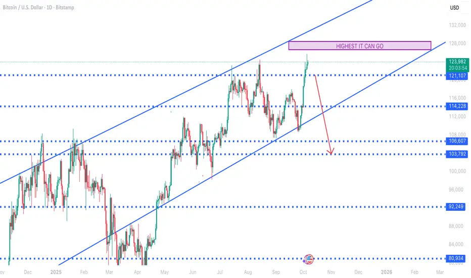 We stated In our most recent post that gained a lot of traction on here that bitcoin will go as high as 130,000$ before crashing in spectacular fashion. There's a high chance it won't even reach that price and 125,000$ is the ATH that will cause bitcoins demise down to 50,000-30,000$.