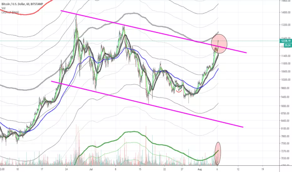The price needs to find support above the 200 ema, as the ema continues to head on forward in its current positive slope. If it goes below, then it will be signal for a continuation of the descending channel.