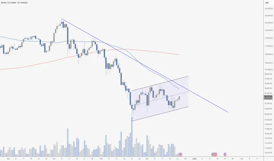 In short, this is a decision zone. As long as Bitcoin remains trapped inside the rising channel and below the trendline, the burden of proof stays on the bulls. A downside break favors the bear flag. A clean upside breakout, especially on volume, flips the script and argues that this consolidation is a launching pad rather than a pause before continuation lower.