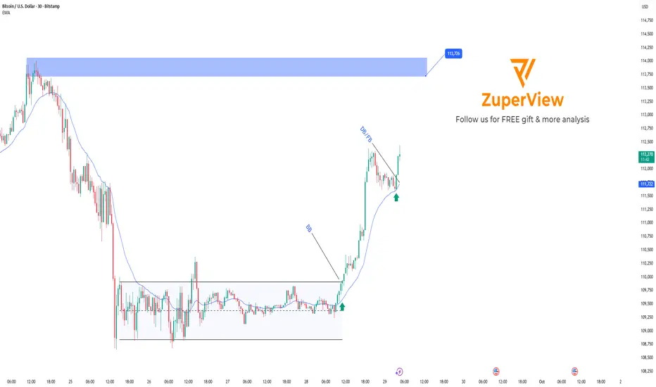 Wait for price to retrace toward EMA (111,000 – 111,200) or consolidate in this zone.