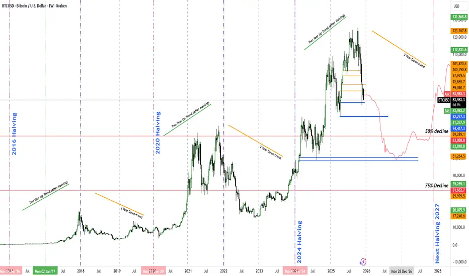 I’ve noticed a consistent pattern in Bitcoin’s cycles. Since 2016, BTC tends to rally for about two years after each halving, then spend the following two years trading sideways or drifting lower as it approaches the next halving. Based on that framework, we are now entering the consolidation phase ahead of the 2028 halving. I expect a period of sideways movement and a possible pullback toward the 51K area before the market slowly trends upward again. Ultimately, I anticipate another aggressive bull run either just before or shortly after the 2028 halving.