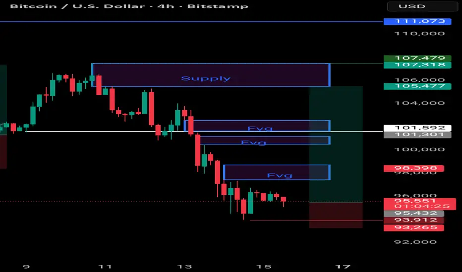 BTC had a break of a low, dropped significantly to make a new low, creating a supply level at the high with 3 FVG's to fill. Now we getting rejection of the bears to start pushing back up!!!