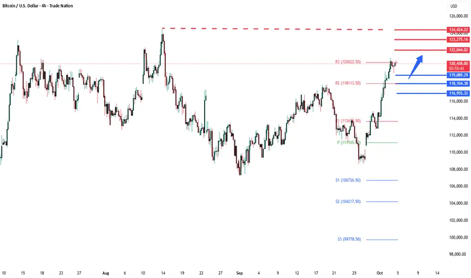 A bullish rebound from 119,090 would confirm ongoing upside momentum, with potential targets at: