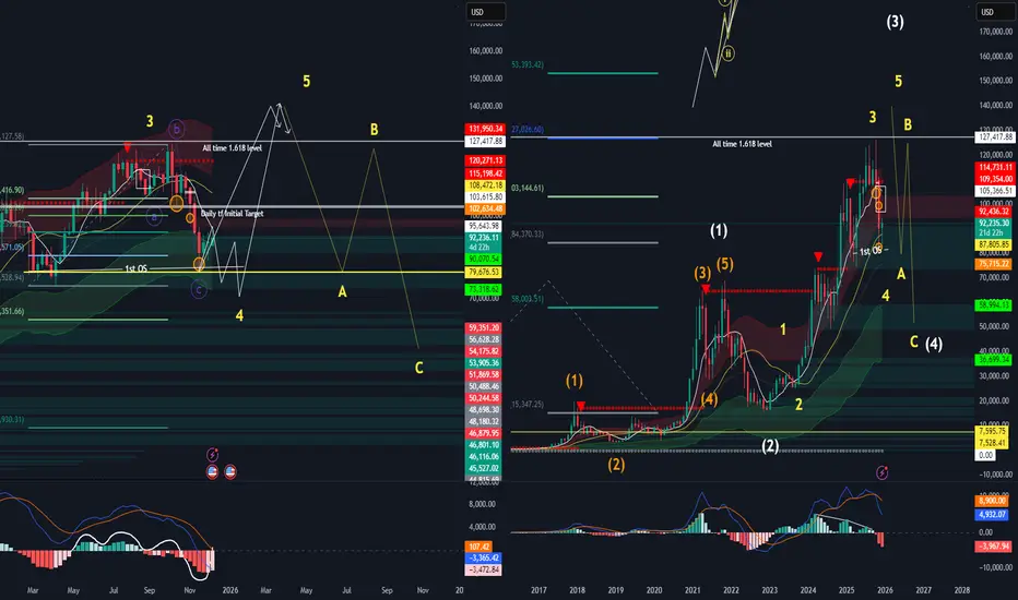 In Elliott wave theory, there is what we call nesting. And bitcoin seems to have finished doing wave 4 of the nest. Seems like we are going for wave 5 to finish the bigger nest, We might see btc going towards 140,000usd per btc territory before bleeding down to 50k territories. If i was more cautious i would leave my tp open because also this might be the last time btc sees the 80k mark. For now i think December will buy and March will determine the next direction, Happy Trading