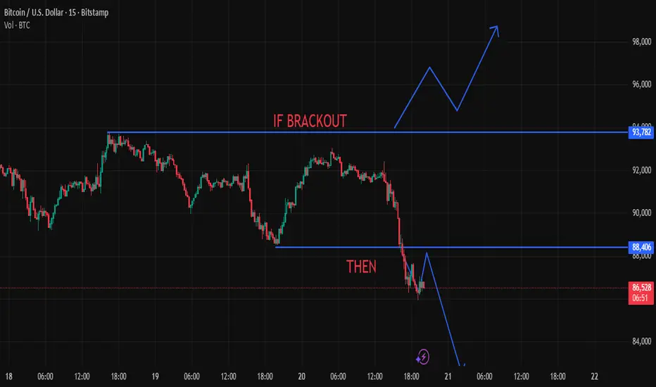 Price is reacting near the lower support area around 88,406, while the upper boundary near 93,782 remains the major resistance.