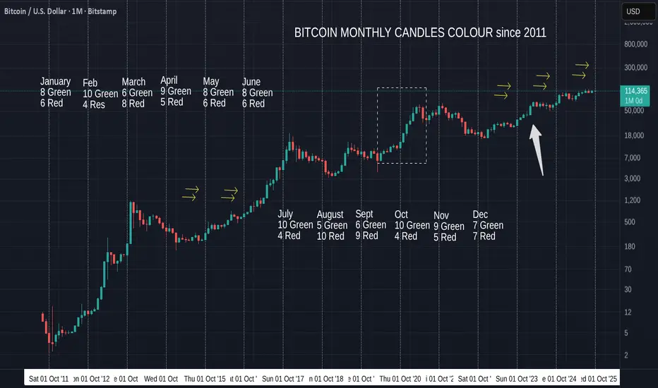 Past October closes are 10 Green to 4 Red, so the Odds are we will see another Green October close, though it may not be a large candle.