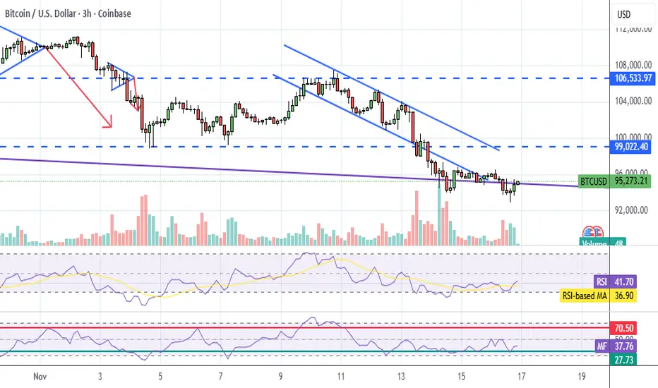 Looks like it's trying to bounce up, but I'm not gonna go long until I see MFI and RSI break above 50 once. BTC melted down all of last week.