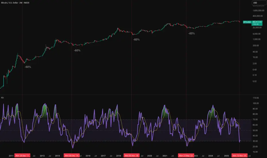 BitcoinUSD 2 Week stock RSI (14 period close)