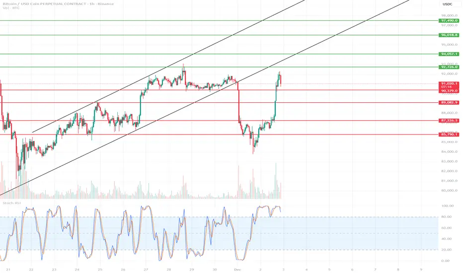If BTC breaks and holds above 93,200, upward momentum resumes.