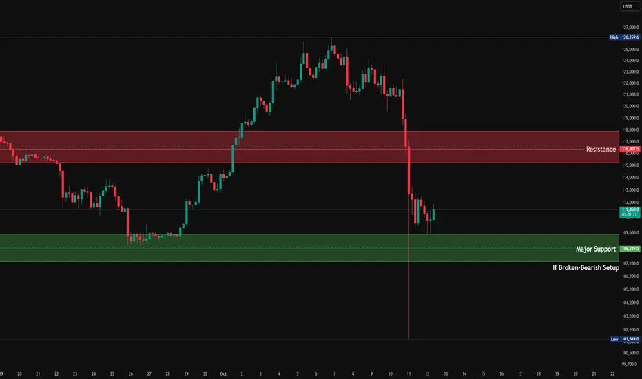 2️⃣ Support Zone: 108,000–108,350 USDT