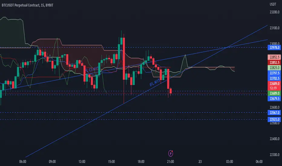 The price might go to 22622. The price has got below its IFL and the Chikou Span has got below its one.