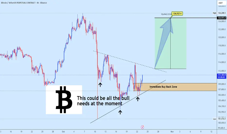 Bitcoin continues to respect the ascending structure with a potential Inverse Head & Shoulders forming along the Immediate Buy Back Zone (107k–109k).