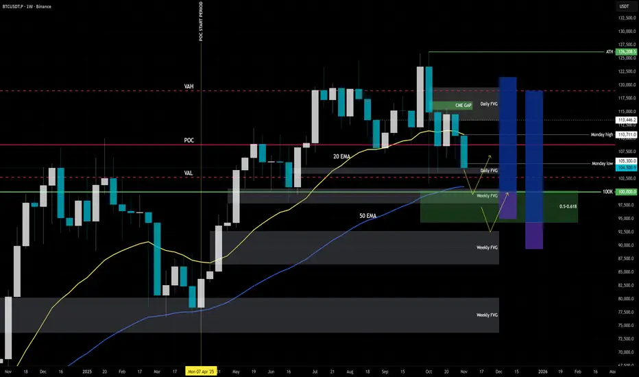 BTC weekly trend looking very strong at 100K'ish level but we are dealing with the seasoned Wall Street Pro's today so there will be either a beautiful front run before 100K or they go bazooka mode to destroy us all with the shake out to 0.618 levels. What is 100% there will be 'blood' in the streets and traders are chewing 'glass' in the corners of their apartments. Please, excuse my harsh thoughts!