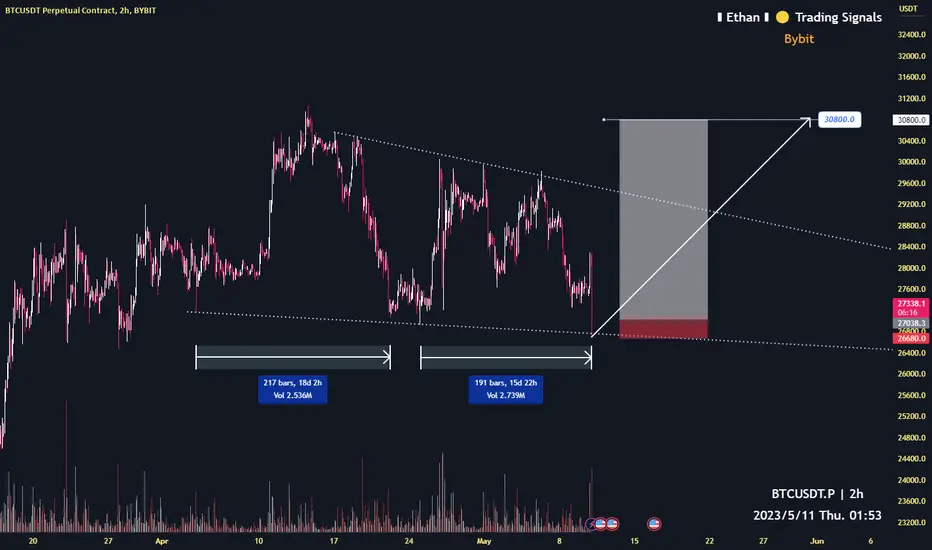We can set SL a little bit lower than previous(26700), and aim at 30800 if this pattern continues to work.