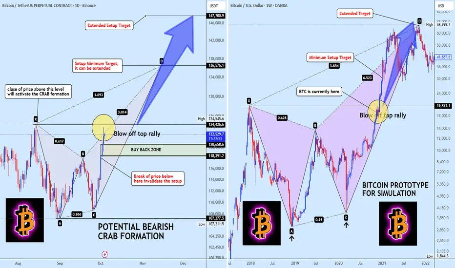 We're looking at a potential BEARISH CRAB PATTERN on the daily chart, and it's a near perfect mirror of the 2017-2021 prototype that launched us to the last cycle top. Buckle up.