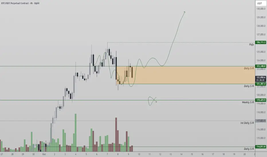 Sustained strength above the $121,000 level would support an eventual push toward new highs, while losing it could extend the correction before another bullish rotation forms.