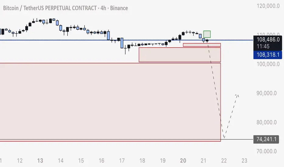 Bitcoin will DROP from 108,500 and we can set a take profit on the short at the end of this order block range at 78,000