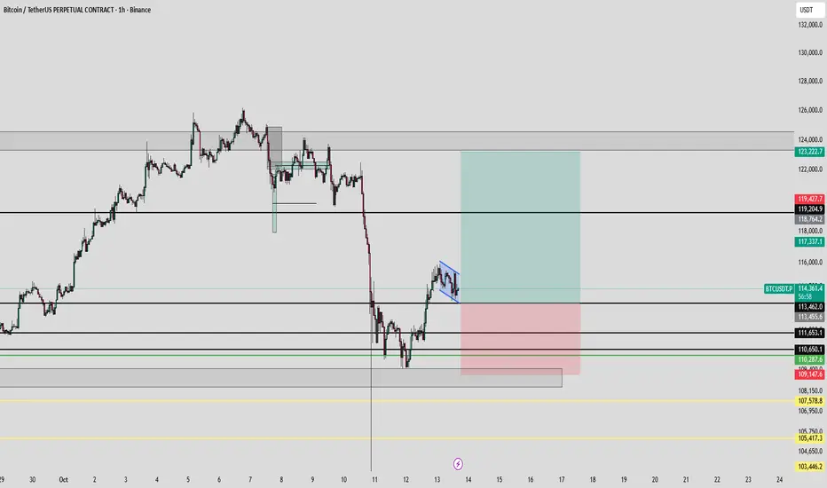 After a sharp drop, BTC has formed a clear reversal pattern around the demand zone (110–111k).
