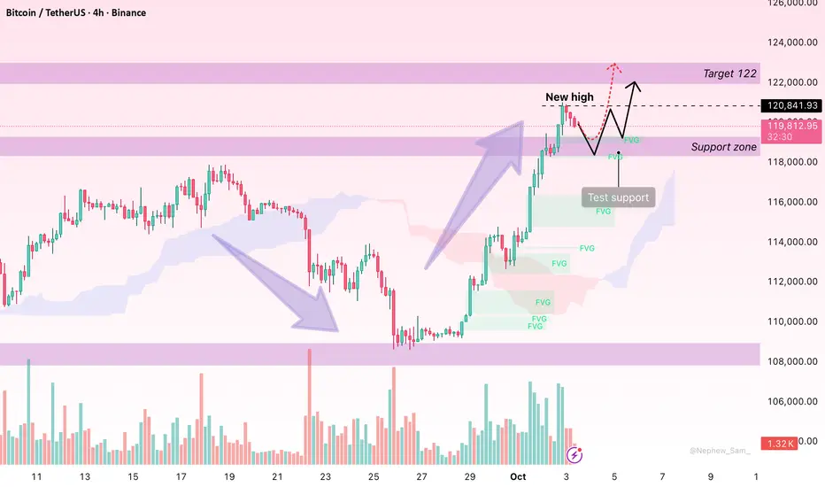In the near term, Bitcoin is expected to hold support at 119,000–118,500 USD and rebound towards 122,000 USD, with extended targets at 125,000 USD and even 128,000 USD if momentum remains strong.