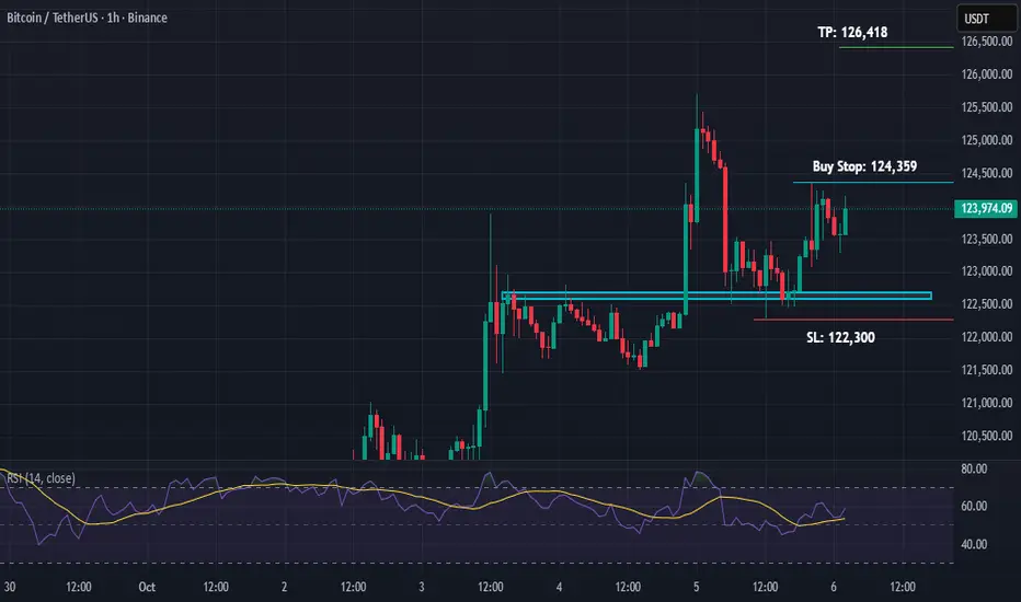 Bitcoin continues to show bullish momentum. A recent bounce from support shows the buyers are in charge. Let's take a 1:1 trade here.