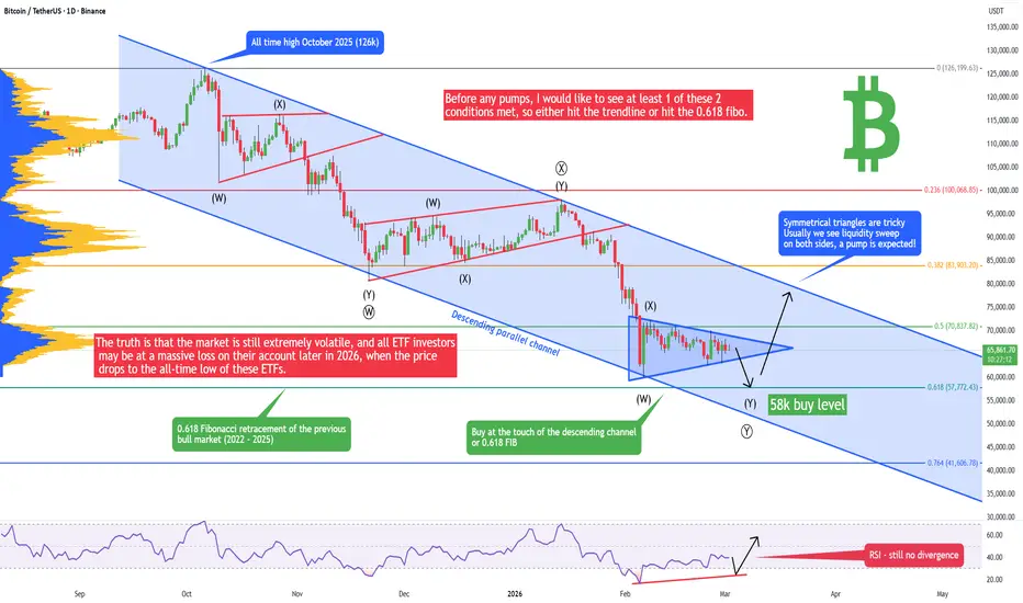 I think we can expect a last capitulation and big sell-off towards 58k in the short term. Then we may see a huge rise to 83k. From a technical point of view, 58k is a very strong support because of the 0.618 Fibonacci retracement of the previous bull market and also because of the 200 weekly moving average. This gives us a strong confluence to buy Bitcoin here.