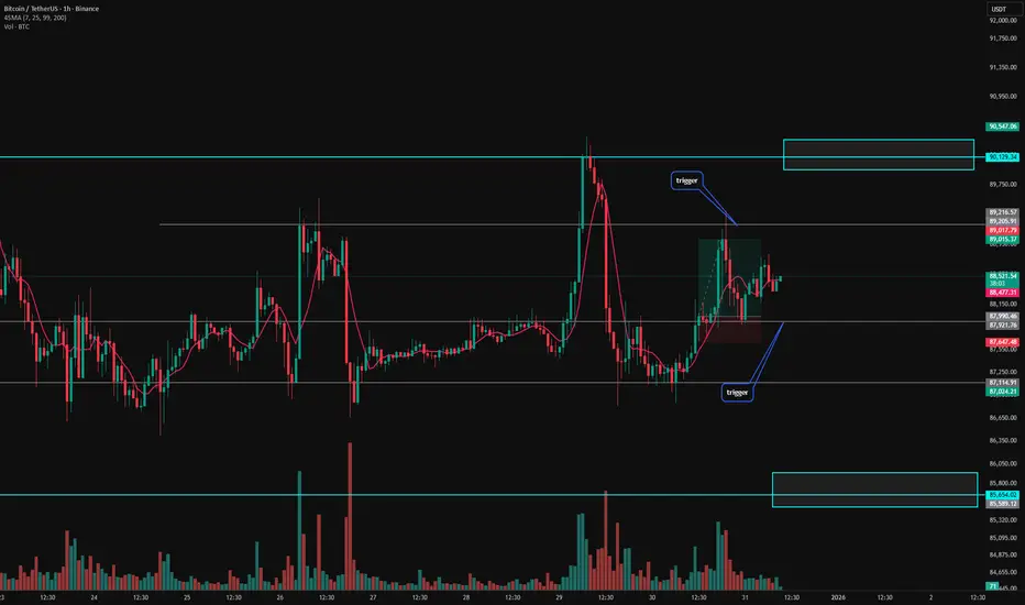 As explained in yesterday’s analysis, after the break of 87,900, a position was triggered.