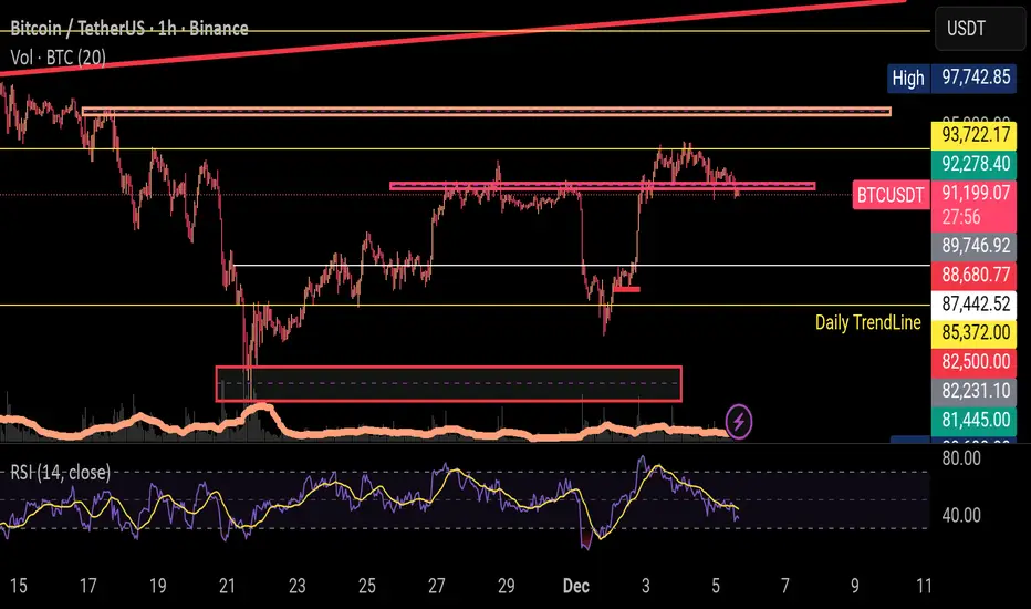 This chart now contains far more important signals than before—especially in terms of market structure, supply & demand zones, and the critical role of the 92–93K resistance.