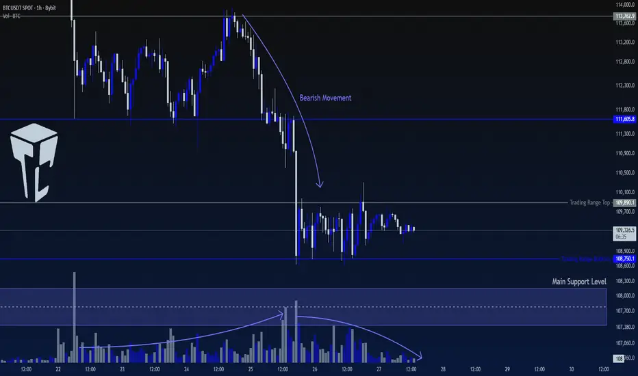 ✔️ During the downward move, volume increased, indicating strong selling pressure. However, as the price reached the 108,750 support and formed a range box, volume decreased, and with the start of the Saturday candle, the volume has dropped to its lowest level.