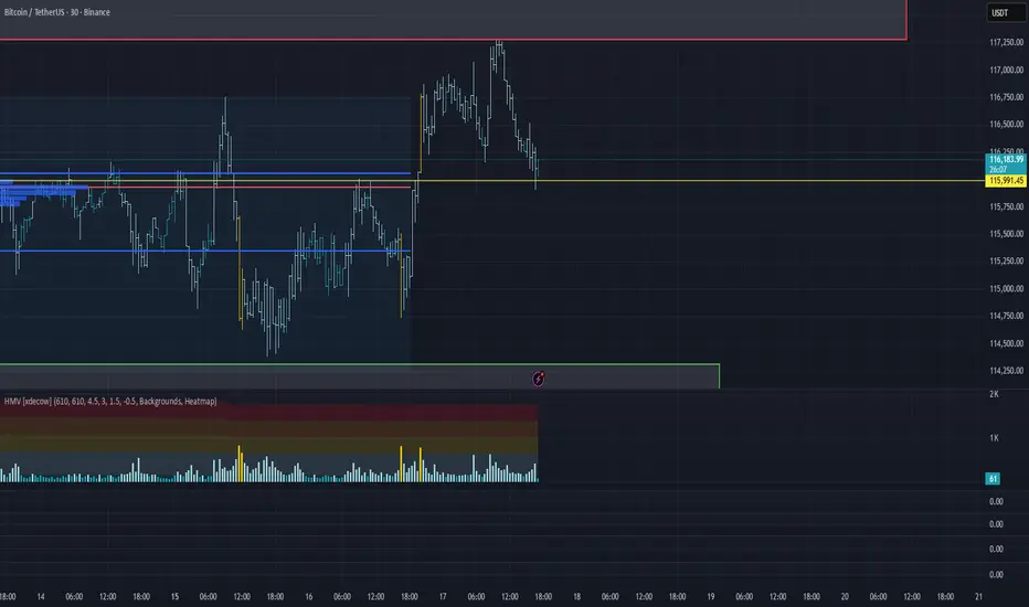 The current wave of selling is accompanied by increased negative delta, which signals strong selling pressure — however, the price reaction has been relatively muted so far. If buyers regain control near the POC of the recent consolidation at ~$116,000, we expect a full test of the $117,500–$119,000 sell zone (accumulated volumes). If there is no buying reaction, we could see a continuation of the decline toward the $114,300-$113,500 support zone (volume area).