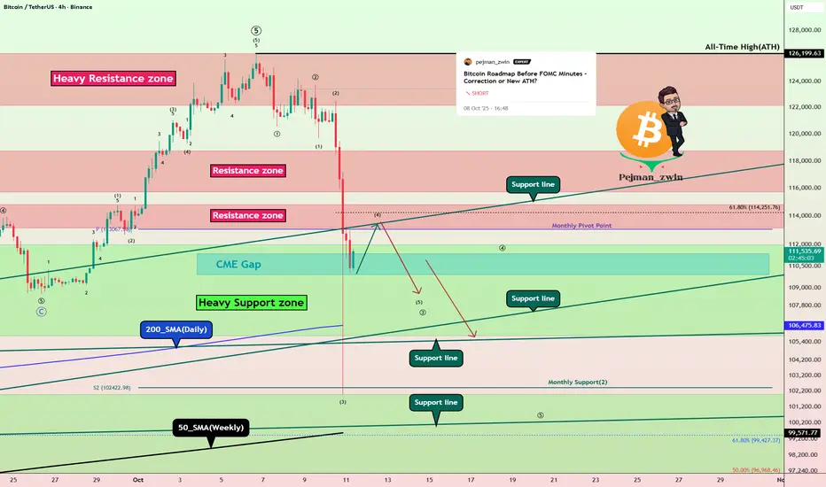 Now, with the news that the U.S. might impose a 100% tariff on China, we saw Bitcoin sharply sell off last night. Actually, as I mentioned in my previous ideas, the rally from about $109,000 to around $126,199(ATH) (which was a new all-time high for Bitcoin) had relatively low volume. That was a sign that a correction might be on the way, and last night’s news just acted as a trigger to speed it up.