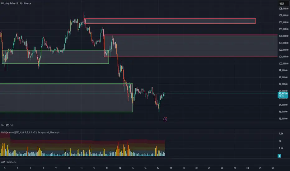 We’re currently at the lower boundary of the important medium-term support zone of $97,000-$93,000 (volume zone). The selling pressure is still high, but it’s not resulting in any significant movement. There is a lack of updates within the zone, and the angle of attack has decreased, while the volumes have increased. There are limit buyers present, but their activity is insufficient to indicate strength.