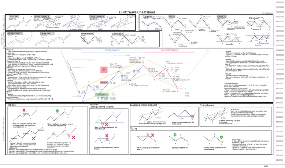 Hello everyone! I'm happy to share this Elliott Wave Cheat Sheet that I personally created during my journey. I hope this guide is helpful to the community.