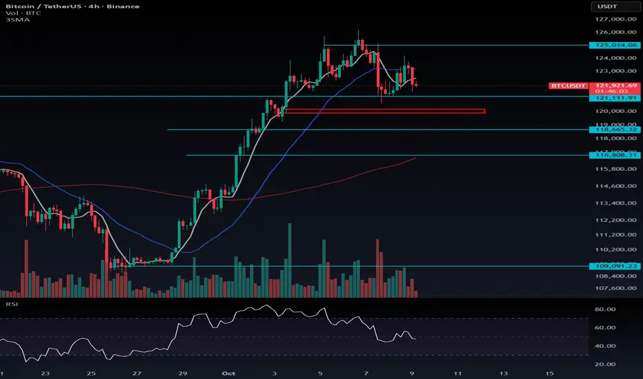 However, if BTC fails to recover after the sweep, the corrective move could extend further down toward the $118,665 support zone.