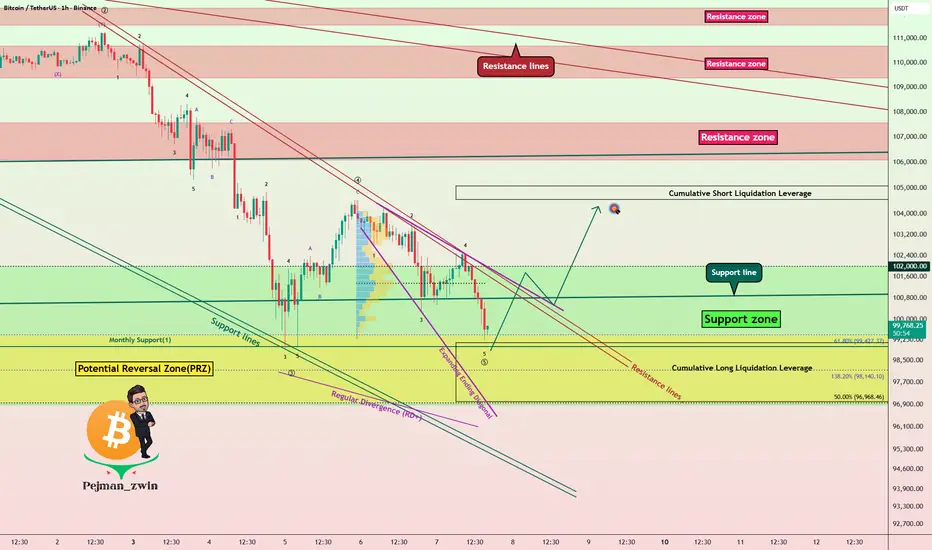 BTCUSDT) is moving in a Support zone($10200,980-$96,880) near a Potential Reversal Zone(PRZ)[$97,000-$99,420] and a Cumulative Long Liquidation Leverage($99,145-$97,208).