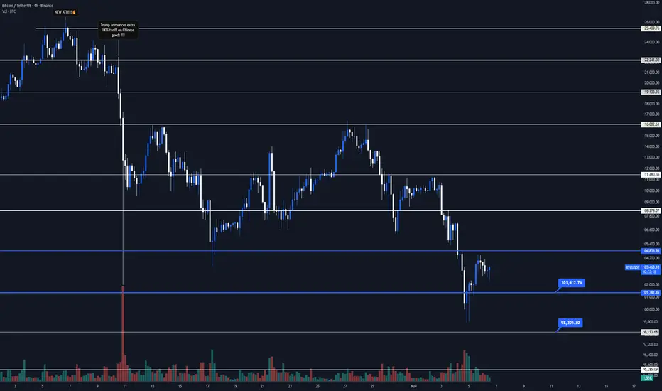The LWC (this 4H structure) is completely bearish, and the MWC also turned bearish after breaking below the 104,000 support.