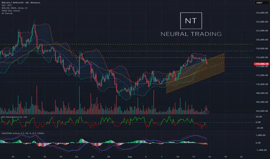 ⏱️ 30-Minute Chart (30m): On the lower timeframe, we see the full drama of the overnight drop. The price plummeted from ~115,800 𝑡𝑜 115,800 to 114,500 in just a couple of hours. The RSI dived into the oversold zone (below 30), from which it is now attempting to bounce. The Bollinger Bands expanded sharply and are now starting to contract, signaling that the downward momentum is fading and a short-term consolidation or bounce is possible.